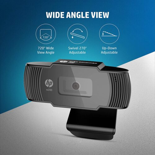 1 review for HP w200 HD 720P 30 FPS Digital Webcam with Built-in Mic, Plug and Play Setup, Wide-Angle View for Video Calling on Skype, Zoom, Microsoft Teams and Apps (20L58AA, Black)